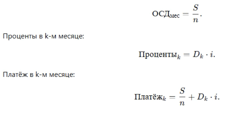 Ежемесячное погашение ОСД при дифференцированном графике постоянно: